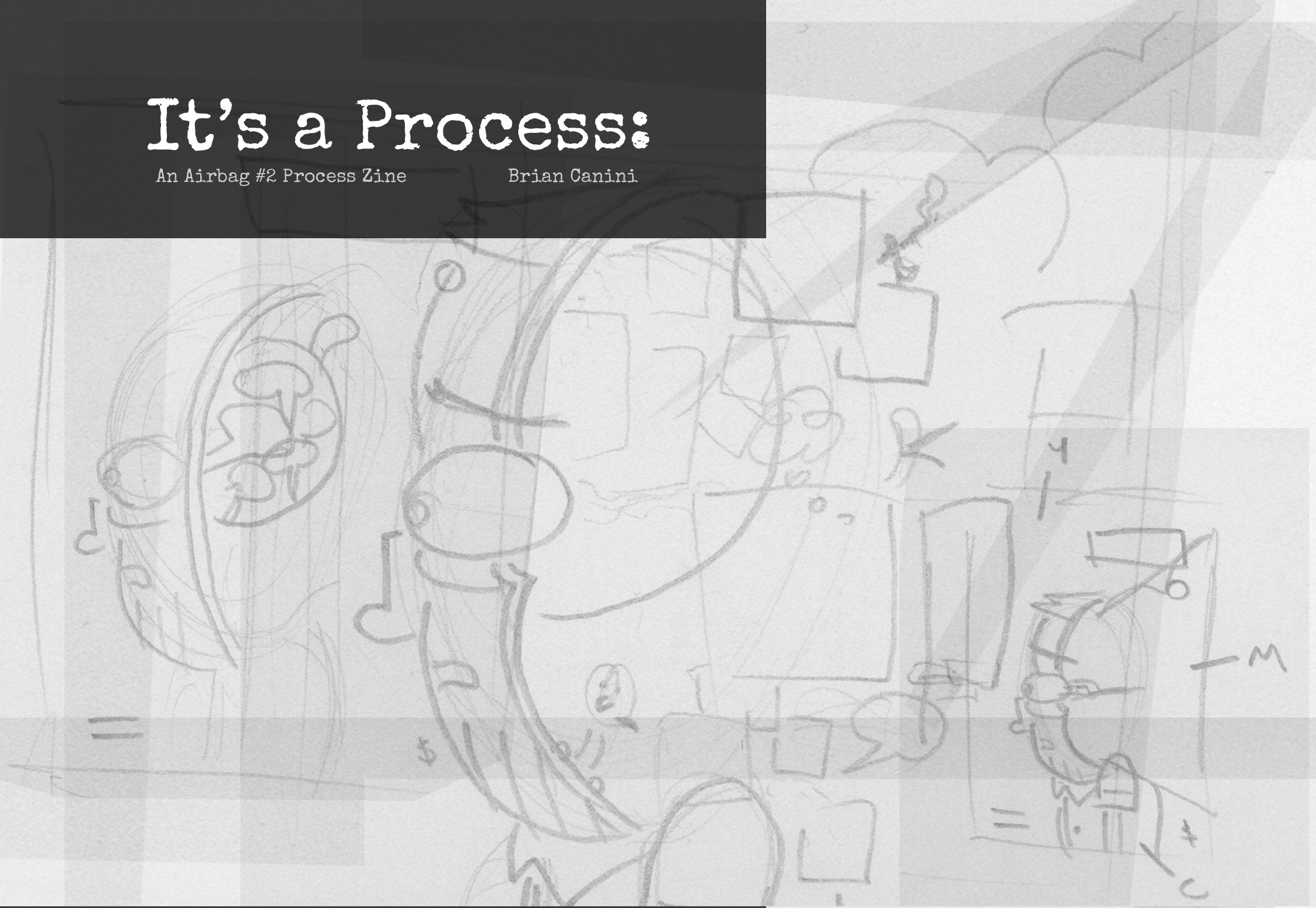 A process zine consisting of character designs, thumbnails, notes, deleted panels, fun facts, and other behind-the-scenes fun from the story "Journey Into Smile Mountain" in Airbag #2.